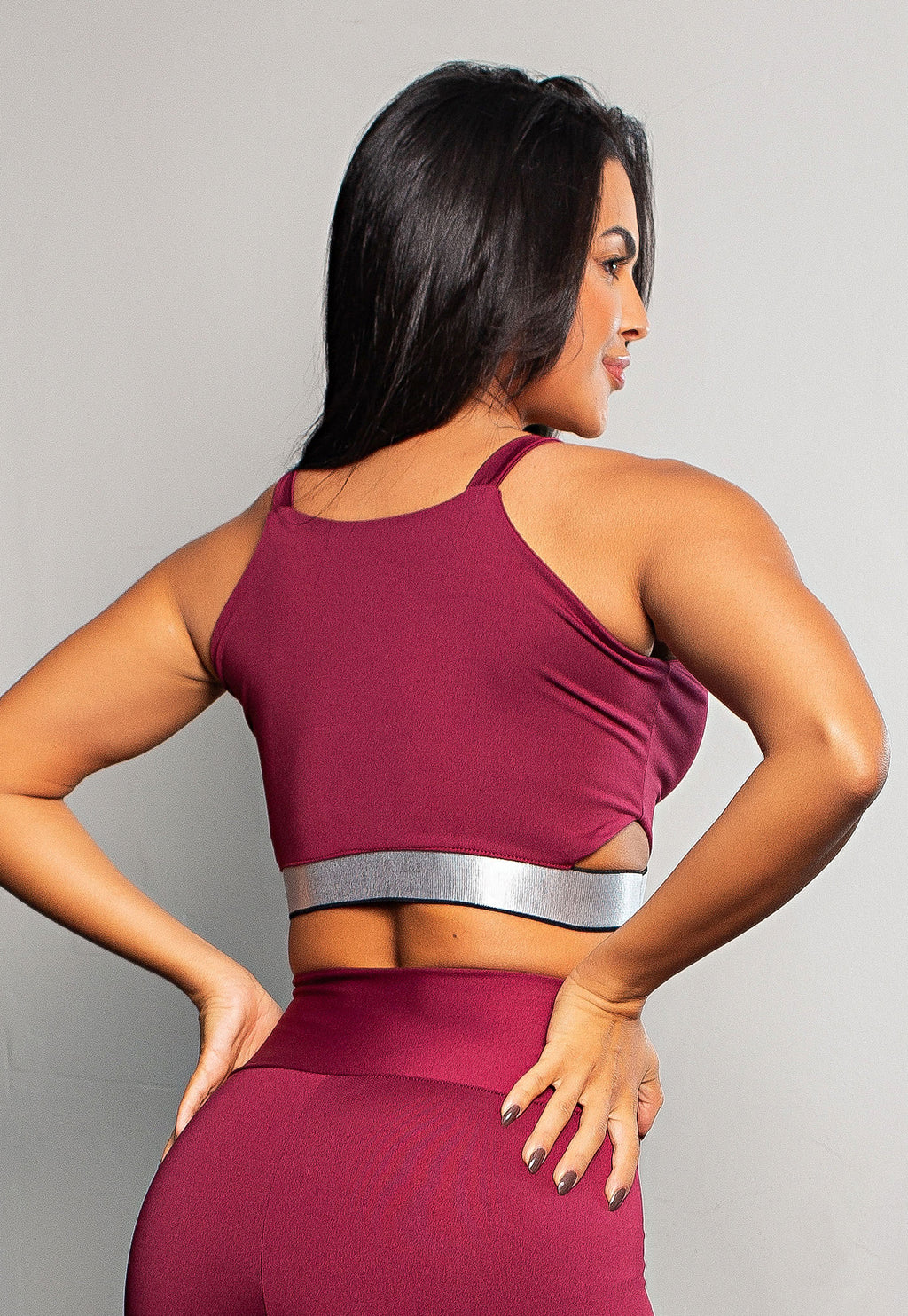 Com design moderno e detalhe metálico na base, ele traz um brilho sutil que realça o corpo e transforma qualquer look fitness em uma produção cheia de estilo.